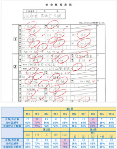 生徒が回答した解答(答案)用紙を回収し採点しますが、成績表に生徒が解答した答案画像が載っていない場合が良くあります。生徒は自分がどの問題にどのような解答をしたのか憶えていないこともあります。また間違えた問題を復習する際にも、なぜ間違えたのか指導をする時にも役立ちます。